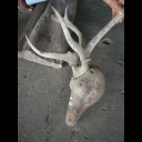 MNA23Antique Burmese Wooden Good Fortune Deer Head. Real Antlers ,teak head,All original