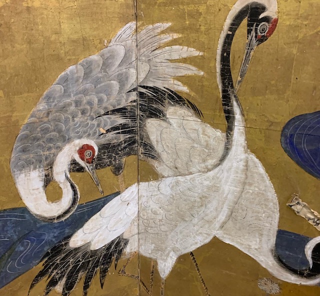 Edo period four panel Japanese Tsuru byoubu(Red crested cranes screen).