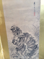 Tora byoubu, Tiger screen, Needs work but very well painted, ( 19th C or earlier Paintings) . Moon Gazing Tigers H.68 1/2"