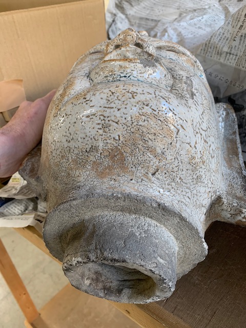 Large antique Buddhist monks head from temple in Mie prefecture. The body is now just ceramic fragments.