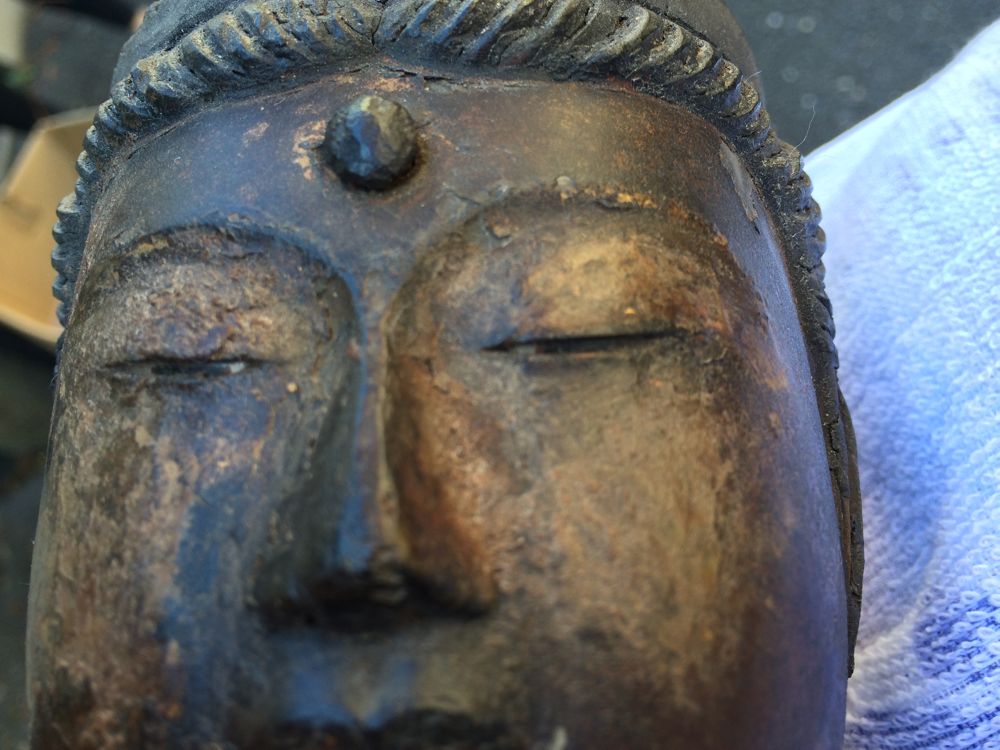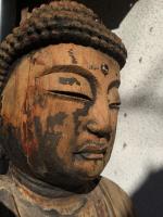 HY152Edo Period,( 1615-1868) Japanese Temple Bishamonten. The finest Bishamonten I have seen at auction in Many years here in Japan. Museum quality. Although the Deity appears to be black he is Completely gold underneath the hundreds of years of Incense Patina. Could be cleaned but I always advise this not be done. Both Demon and Bishamonten have hand blown Glass eyes.