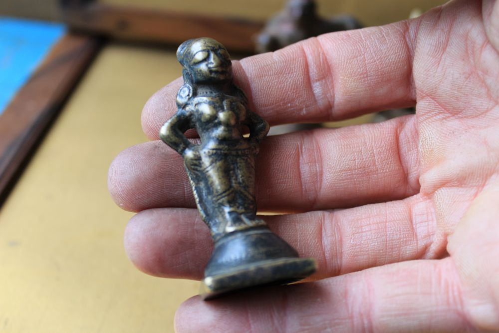 18th C or earlier bronze Offering deities Krishna, Shiva,Ganesha H 3.0" Smaller H 2.25" $275 ea. Woman H 2.75" Chrishna H 2.0" L 2.0"