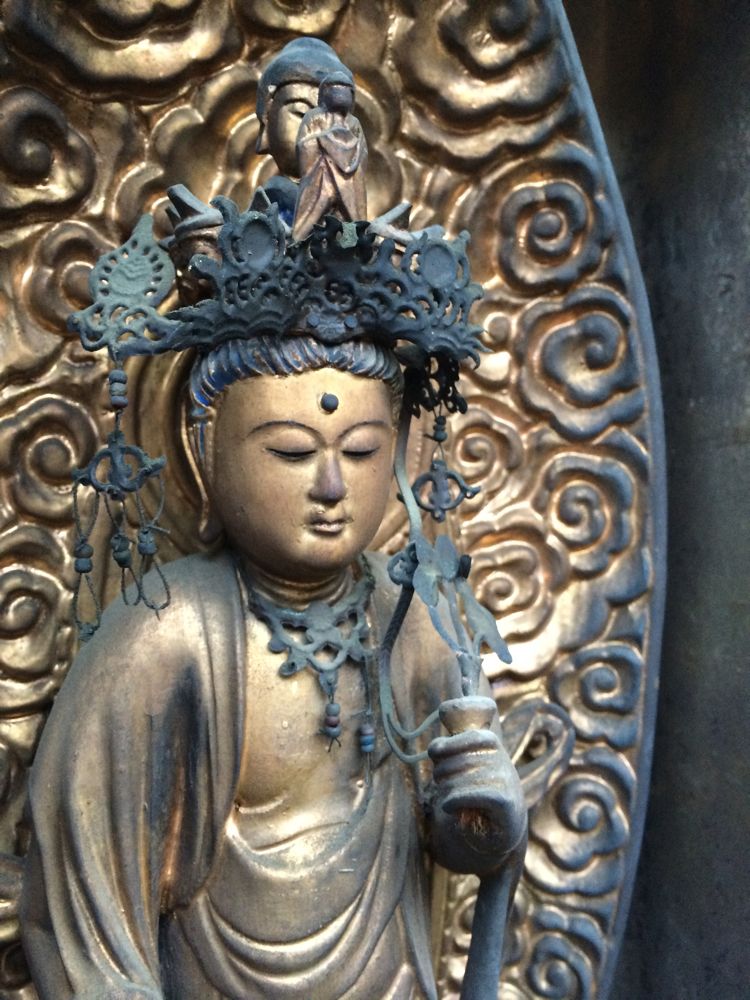 Kannon, ( Japanese Kwan Yin). Protector of Children, Goddess of Mercy. early 19th Century. Edo period, ( 1615-1868) From a Nagoya Temple in Aichi prefecture. FUDOJI TEMPLE. H.31 1/2"