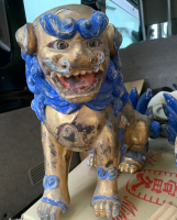 Edo period,(1615-1868) Japanese wooden Shishi,(Temple guardians), with hand blown glass eyes.