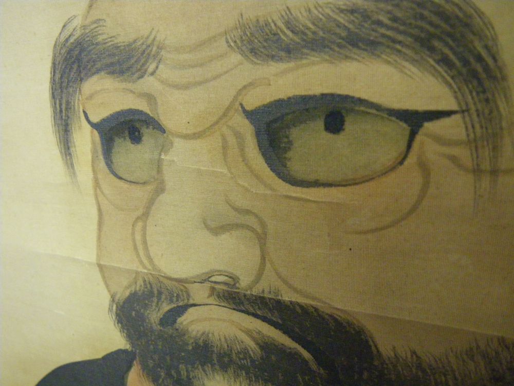 Kabuki Charactor ( all male cast) from the late 19th C. Well painted small puncture top right .