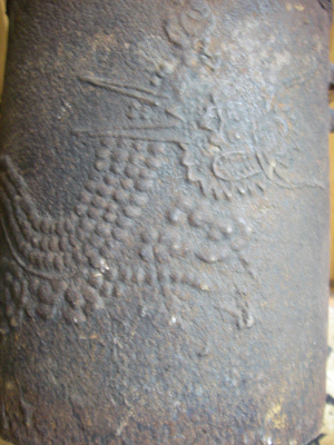 Edo (1615-1868)/This elegant water kettle used for the tea ceremony is decorated with a relief design of a dragon appearing from behind swirling clouds and the wind. The dragon, representing fire, and the clouds, representing water, are preferred subjects for chagama. The relief is clear and evocative.