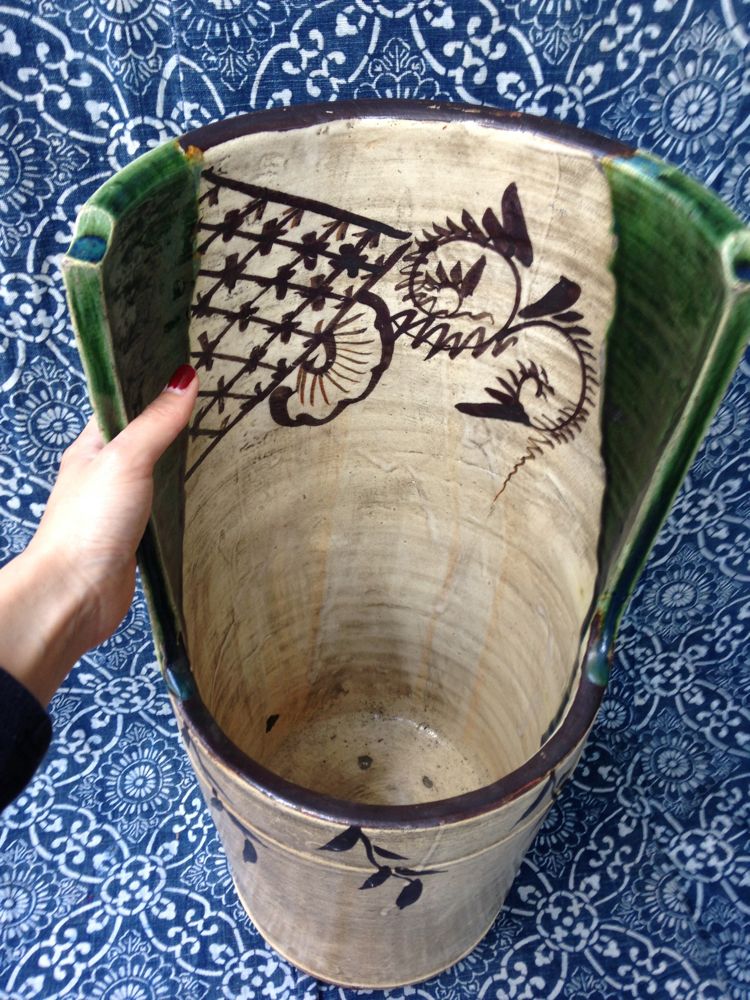 Oribe, hanaike, ( Flower display Vase)H.21 1/4" Dates around Taisho period poss early Showa, ( 1912-1940s) W.10 1/4" D.9"