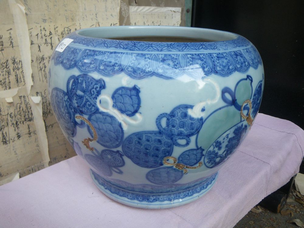 Antique Imari-yaki Hibachi with 'hyotan'-gourd-from Taisho period; width 14" height 11.5"