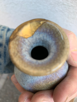 Antique Karatsu tokkuri,(Sake bottle), with beautiful kintsugi,(gold repair), in signed box.