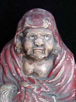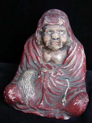 KDAR 100Daruma Statue from Shigaraki Japan. This was made by Rian1, A very famous Japanese Shigaraki Potter from the late 19th Century. The Daruma is signed by Rian 1 and dates between 1898-1920. Rian 1 also was the creator of the first Ceramic Tanuki in Shigaraki , ( Good fortune Badgers you see in front of Noodle shops all over Japan). Picture of the Master craftsman included, courtesy of the Shigaraki historical society.