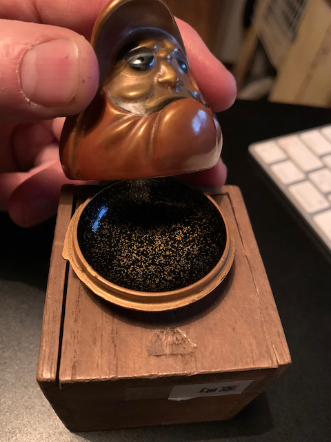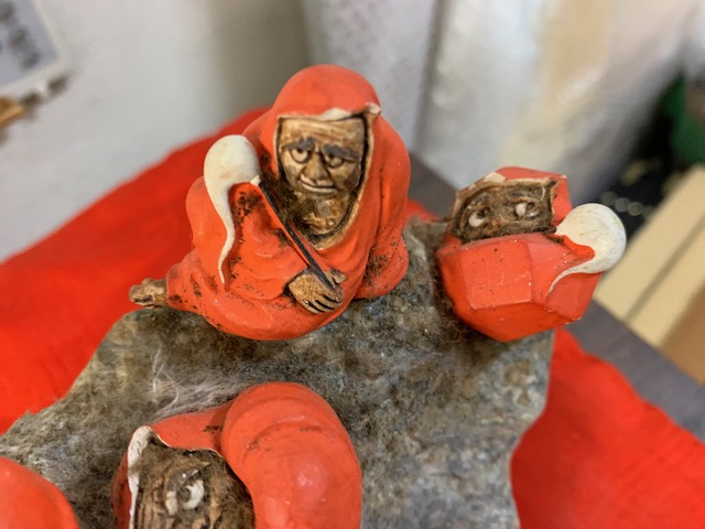 Antique Ishigami,(Stone figure naturally enveloped in root wood) emulating a seated Daruma. Ishigami were most revered by Zen Buddhist monks during the Meiji period,(1868-1912).