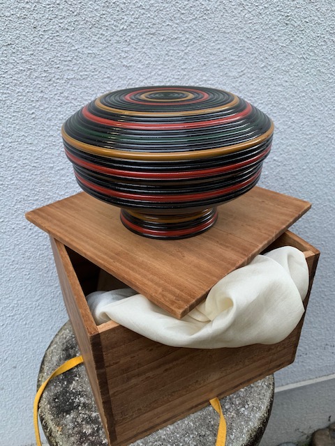 Lacquered Red Fuji Natsume,(Tea caddy) w/original signed box.