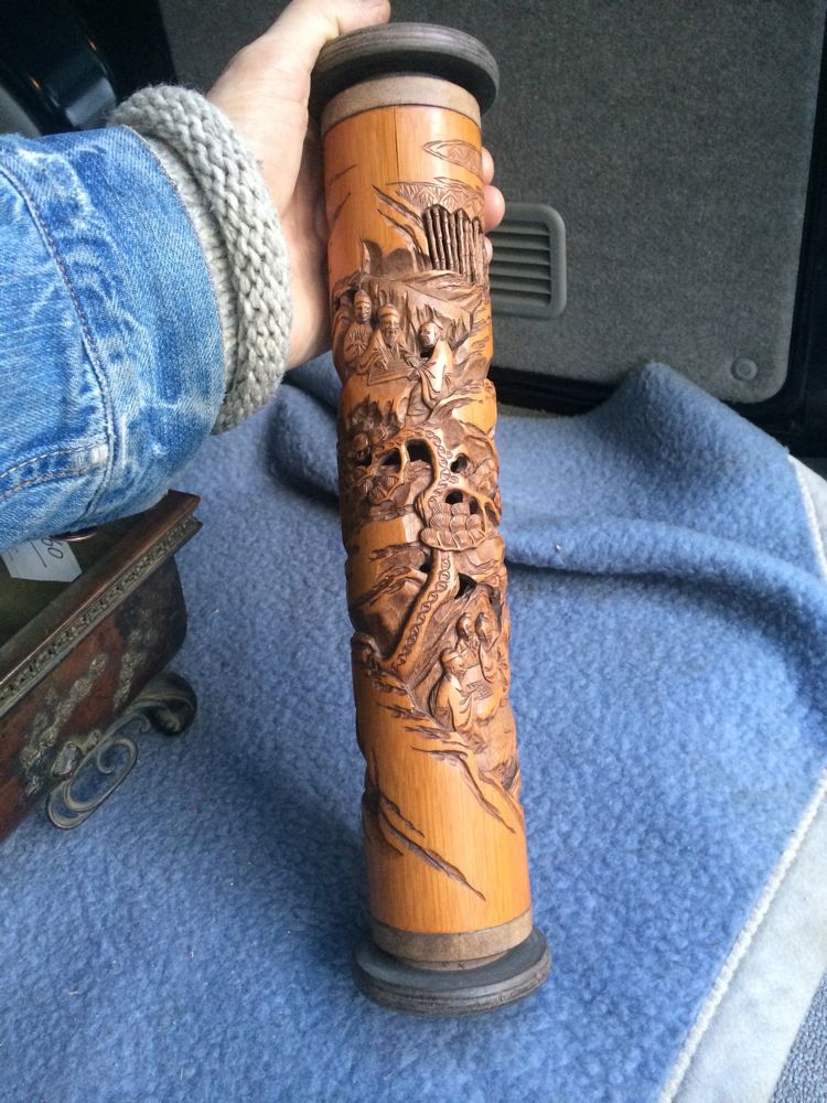 Bamboo beautifully carved Incense stick holder. Collected at Auction in Kyoto. Chinese design.