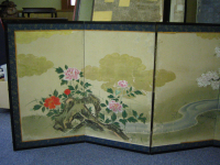 Japanese hand painted screen of Pheasants in under the cherry blossom.