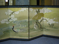 Makura byobu which directly translated as pillow screen, is a low screen put near the head side of the futon and were made for a newly-married couple.